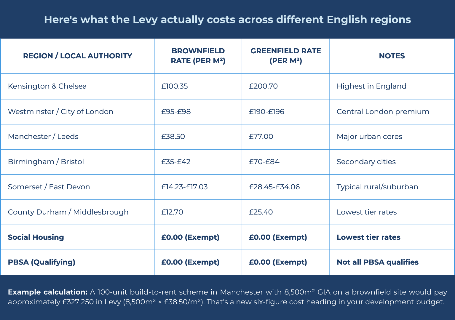 Market Segmentation: The Levy will accelerate the "design down" trend in marginal markets where the additional £50-£150/m² cost tips schemes from viable to unviable. Expect more 17-metre and 6-storey schemes in areas outside prime urban locations.